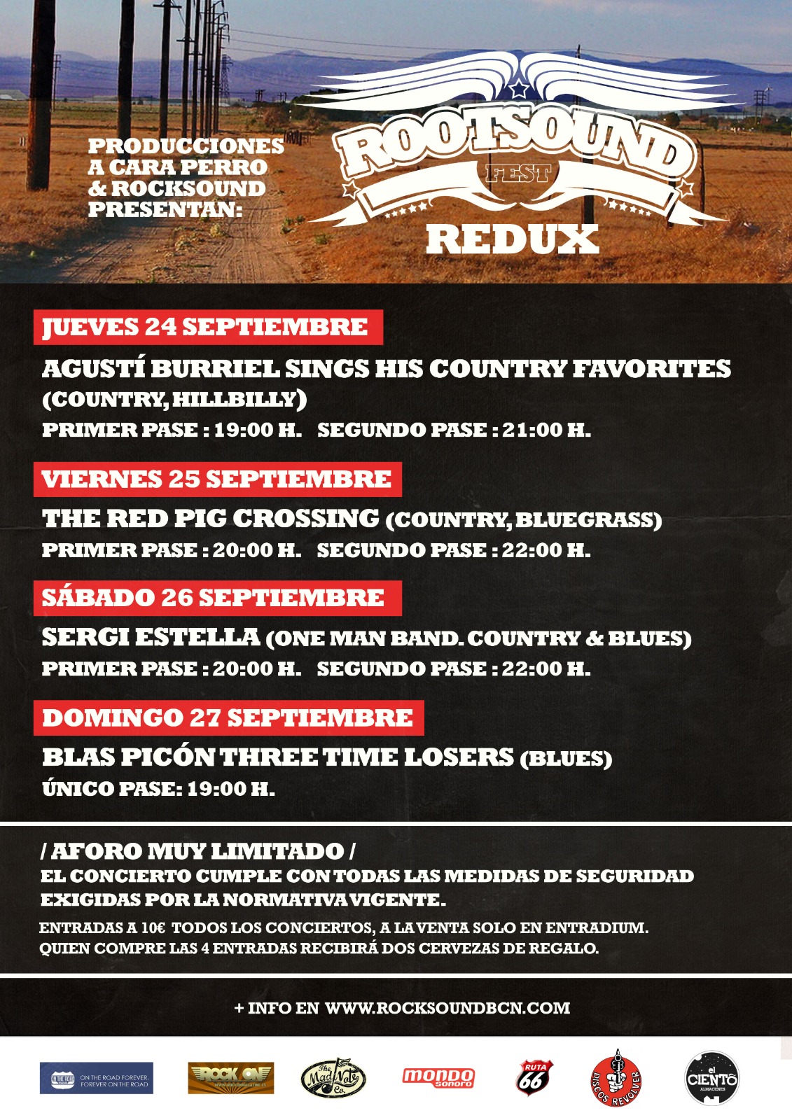 Cuando entre Rocksound BCN y Producciones Acararaperro iniciamos el año pasado ese proyecto llamado Rootsound Fest lo hacíamos con la ilusión de todo el que comienza algo nuevo. Con la filosofía que nos es habitual, la de la pasión y el divertimento. Conseguimos montar, y ya nos perdonarán el baño de ego, una edición que, al menos a nosotros, nos pareció excelente. Con artistas nacionales e internacionales, y nombres del calado de Charley Crockett, Alice Wallace o Garrett T. Capps, entre otros. Este año, por supuesto, no hemos sido ajenos a lo que nos rodea, y la suspensión de algo que creamos con espíritu de continuidad sobrevoló mucho tiempo nuestras mentes e incluso llegamos a anunciarlo. Pero aquí estamos, porque a cabezotas nos gana poca gente. Con una versión Redux, más humilde, pensada para un fin de semana largo y con presencia exclusivamente nacional, pero ¡vaya presencia! Hemos intentado traeros lo mejor de cada casa y, como siempre, representar la mayor parte de los estilos de la música de raíces. Este año no hay abonos, por logística, pero a cambio los conciertos tienen un precio de solo 10 €uros, aunque los que os hagáis con las cuatro entradas os llevaréis un par de cervezas gentileza de la casa. Con aforo muy reducido, como indica la normativa y cumpliendo con todas las medidas de seguridad. Porque nos resistimos a dejar morir algo que nos ilusionó tanto. Así que ahora solo nos queda pedirte tu apoyo a este Rootsound Redux. Ten claro que nosotros llevaremos nuestro lema hasta el final. Ya sabes, Country Soul & Rock & Roll Heart. Nos vemos en Rocksound.